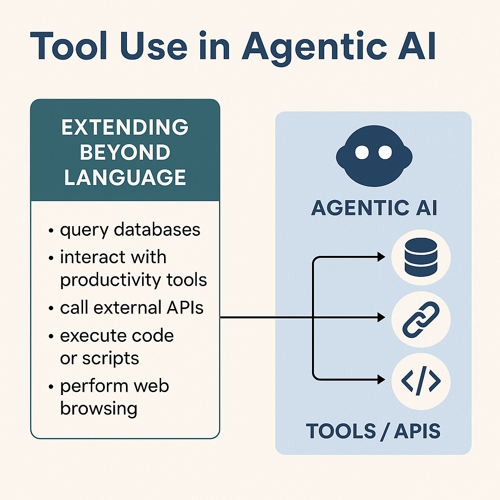 Tool use is the engine behind operational value. Without it, agents are limited to sandboxed environments—answering questions but never executing actions. Once equipped with APIs and tool orchestration, Agentic AI becomes an actor, capable of driving workflows end-to-end.
